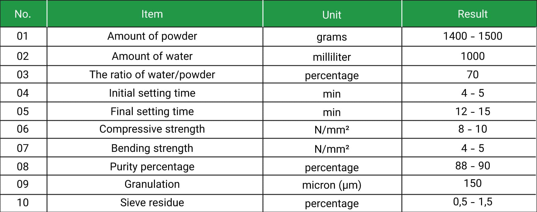 This gypsum must be used within six months of production and within one week after opening. Mix only with clean water, without additives, to preserve purity. Designed for artistic, decorative, and sculpting applications, it ensures reliable results when applied as instructed.